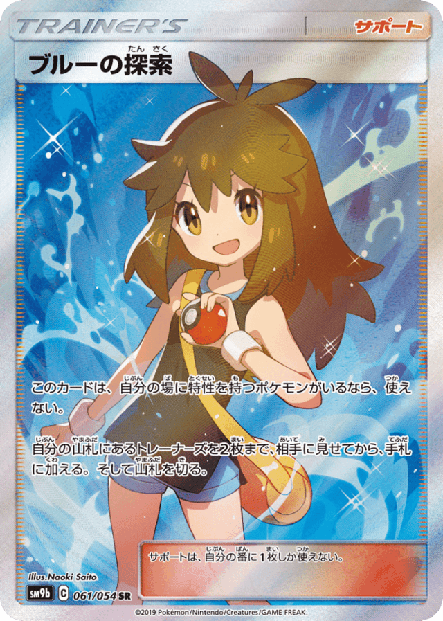 - このカードは、自分の場に特性を持つポケモンがいるなら、使えない。 — 自分の山札にあるトレーナーズを2枚まで、相手に見せてから、手札に加える。そして山札を切る。 — サポートは、自分の番に1枚しか使えない。