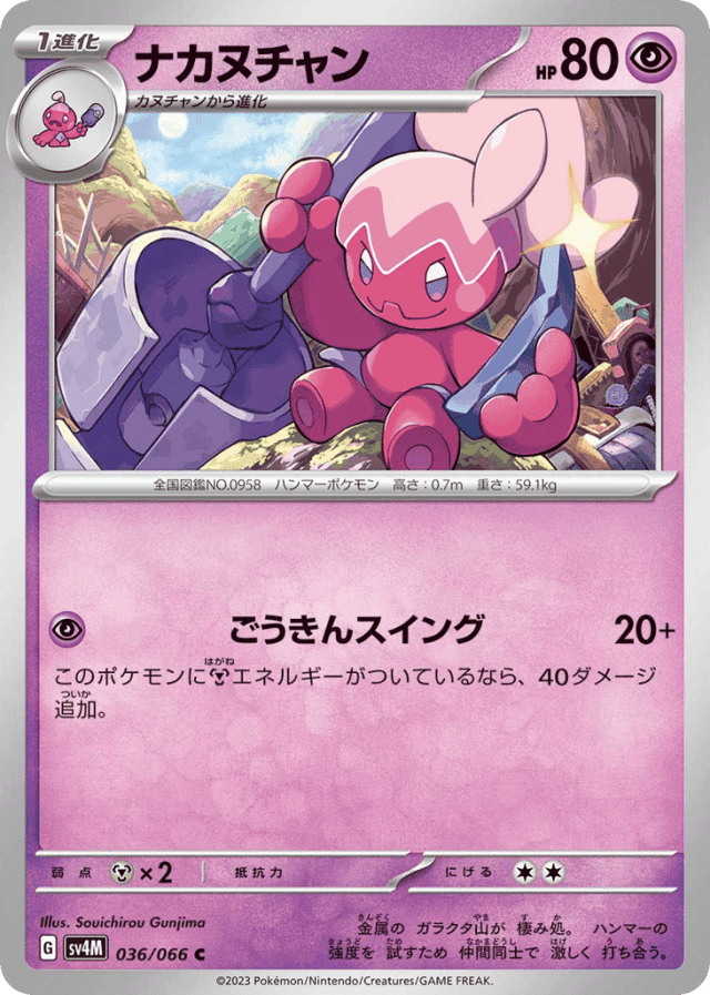 Alloy Aswing20+Cost: 1このポケモンにMetalエネルギーがついているなら、40ダメージ追加。