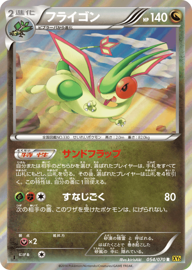 Sand Flap自分または相手のどちらかを選び、選ばれたプレイヤーは、手札をすべて山札にもどし、山札を切る。その後、選ばれたプレイヤーは山札を4枚引く。この特性は、自分の番に1回使える。