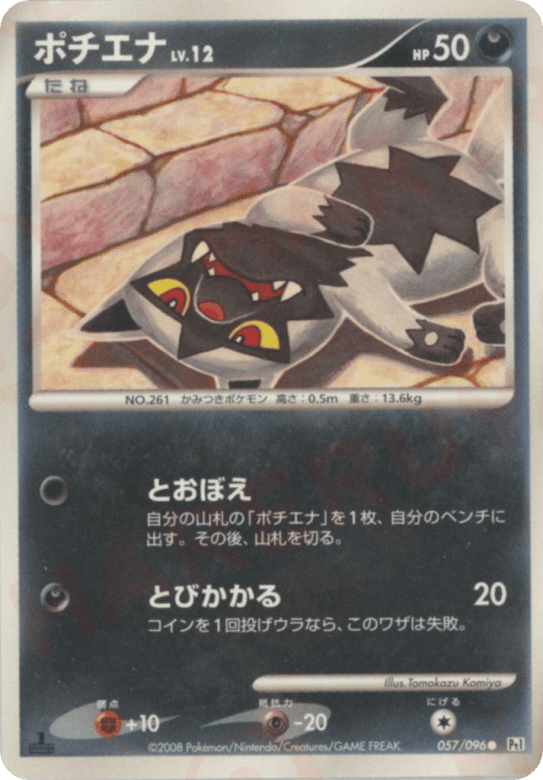 自分の山札の「ポチエナ」を1枚、自分のベンチに出す。その後、山札を切る。