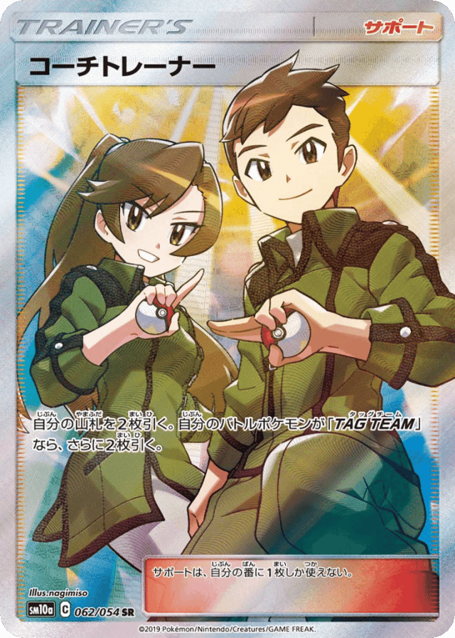 自分の山札を2枚引く。自分のバトルポケモンが「TAG TEAM」なら、さらに2枚引く。 サポートは、自分の番に1枚しか使えない。
