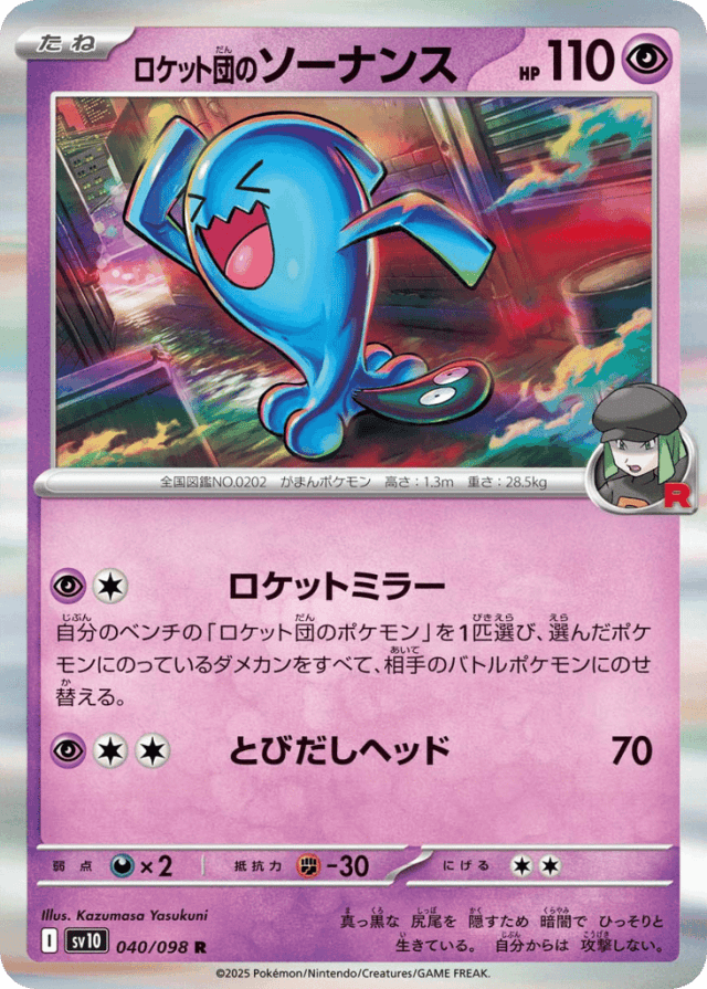 Rocket MirrorCost: 2自分のベンチの「ロケット団のポケモン」を1匹選び、選んだポケモンにのっているダメカンをすべて、相手のバトルポケモンにのせ替える。
