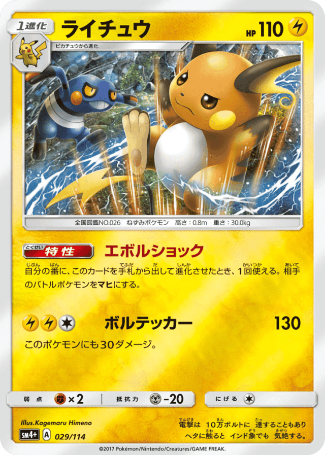Volt Tackle130Cost: 3このポケモンにも30ダメージ。
