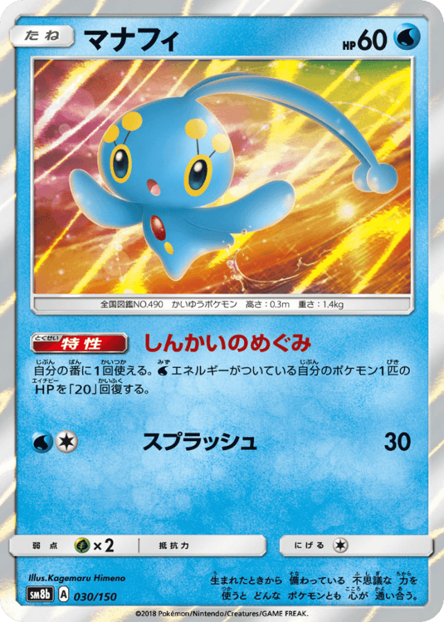 自分の番に1回使える。Waterエネルギーがついている自分のポケモン1匹のHPを「20」回復する。