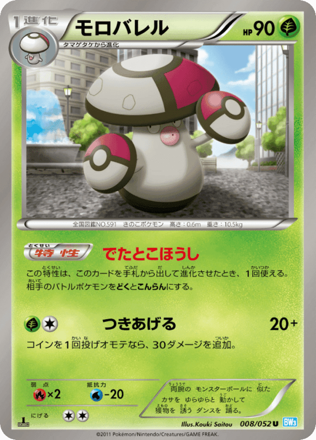 Sporpriseこの特性は、このカードを手札から出して進化させたとき、1回使える。相手のバトルポケモンをどくとこんらんにする。