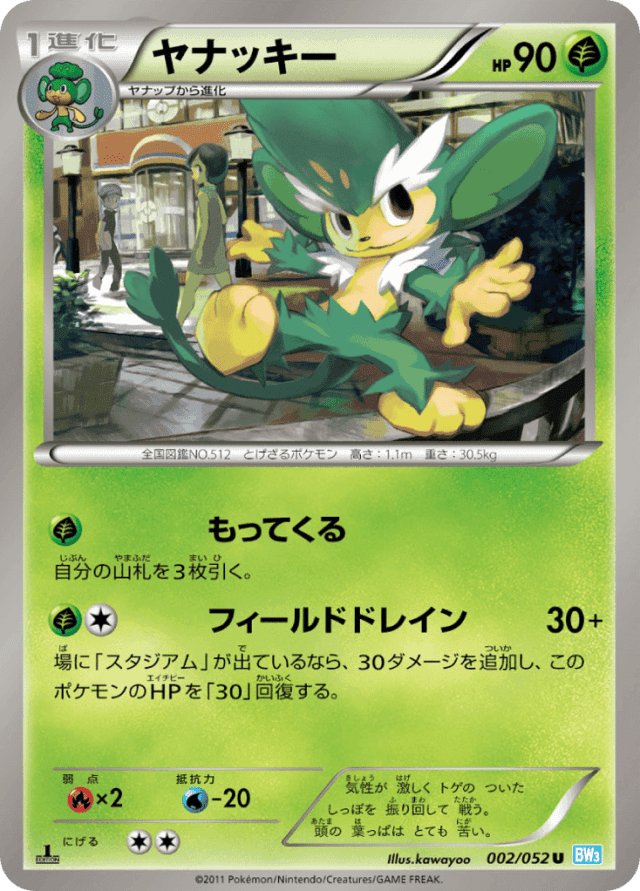 Stadium Drain30+Cost: 2場に「スタジアム」が出ているなら、30ダメージを追加し、このポケモンのHPを「30」回復する。