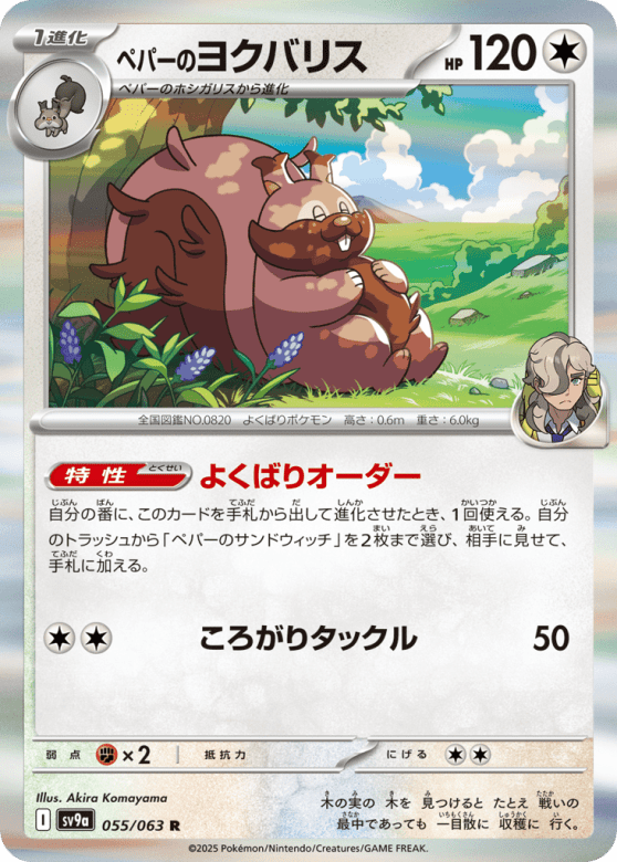 自分の番に、このカードを手札から出して進化させたとき、1回使える。自分のトラッシュから「ペパーのサンドウィッチ」を2枚まで選び、相手に見せて、手札に加える。