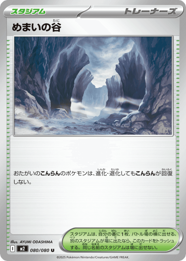 おたがいのこんらんのポケモンは、進化・退化してもこんらんが回復しない。 スタジアムは、自分の番に1枚だけ、バトル場の横に出せる。別の名前のスタジアムが場に出たなら、このカードをトラッシュする。