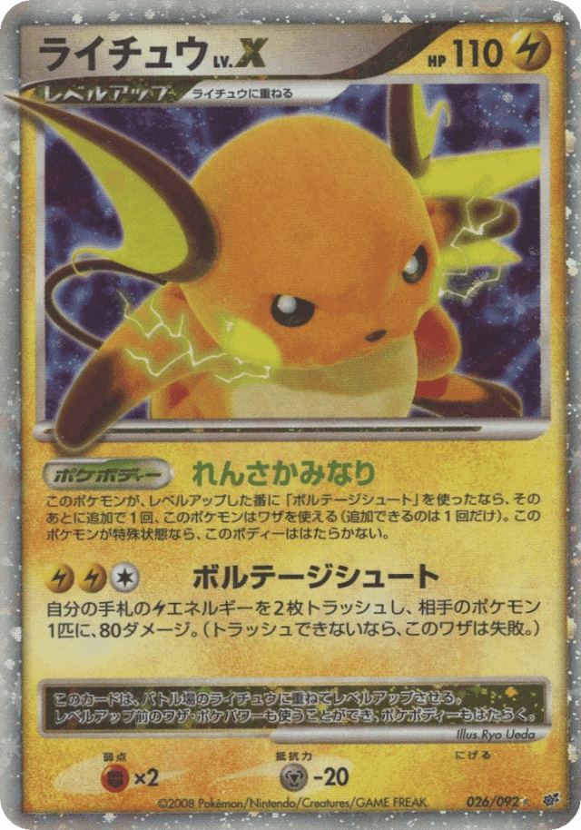 Once during your turn, when you put Raichu LV.X onto Raichu and use Voltage Shoot, you may use another attack of Raichu afterward. This power can't be used if Raichu is affected by a Special Condition.