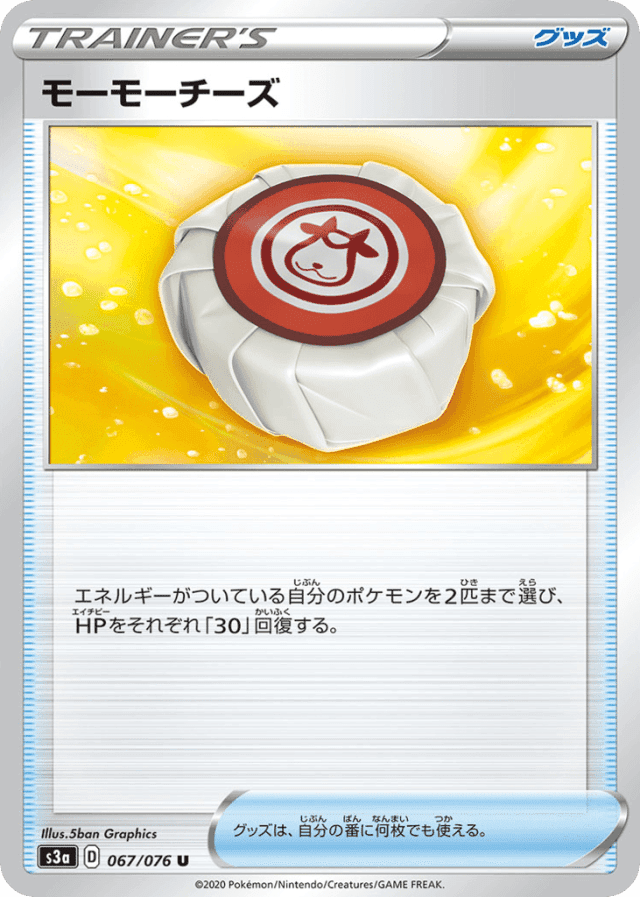 エネルギーがついている自分のポケモンを2匹まで選び、HPをそれぞれ「30」回復する。 グッズは、自分の番に何枚でも使える。