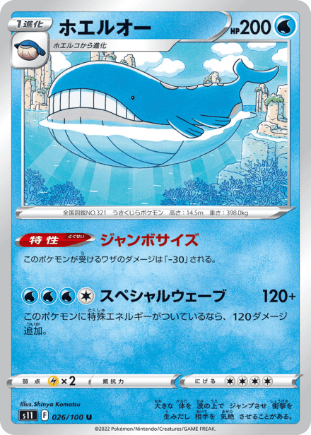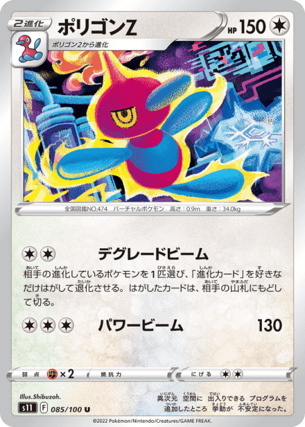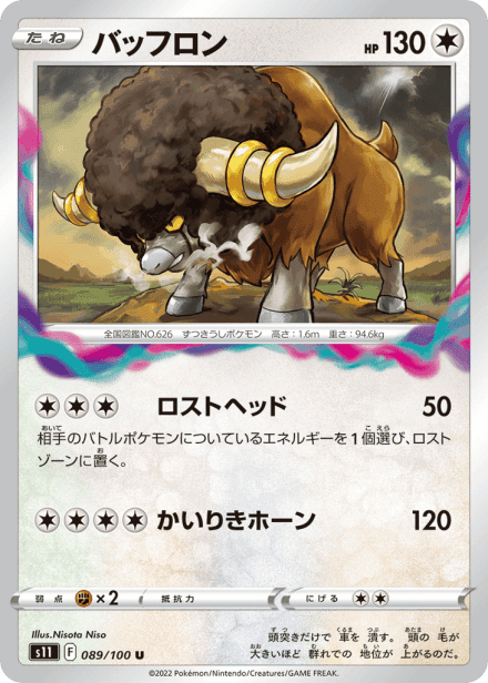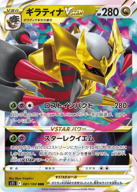 ロストアビス (Lost Abyss) is the S11 expansion in the Japanese Sword & Shield series of the Pokémon Trading Card Game, released in Japan on July 15, 2022. The set is catalogued with a total of 127 cards and a printed total listed as 100, and it was released in Japanese under the code S11. Collectors can expect the standard mix of Pokémon, Trainer, and Energy cards presented across common to rare rarities, including holographic cards and higher-rarity chase cards and variants. Themed around the visual and thematic direction of the set within the Sword & Shield line, it follows the usual expansion structure familiar to Pokémon TCG collectors.