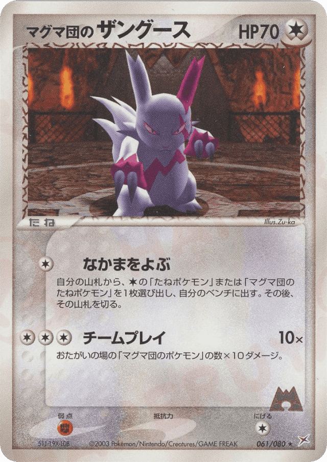 Search your deck for a Colorless Basic Pokémon or Basic Pokémon with Team Magma in its name and put it onto your Bench. Shuffle your deck afterward.