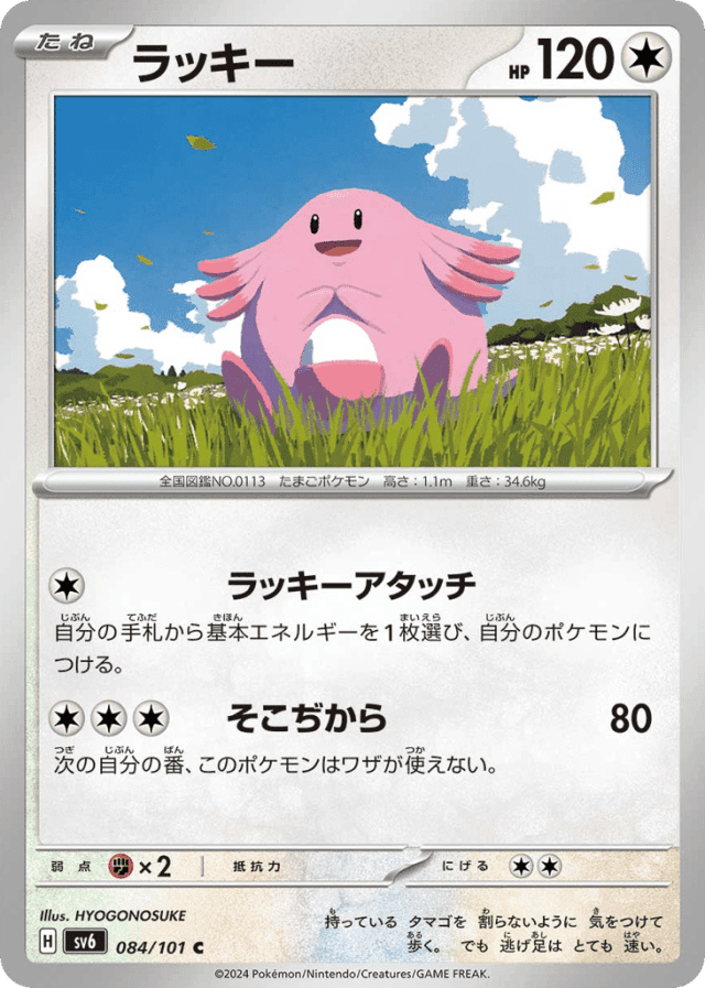 Lucky AttachCost: 1自分の手札から基本エネルギーを1枚選び、自分のポケモンにつける。