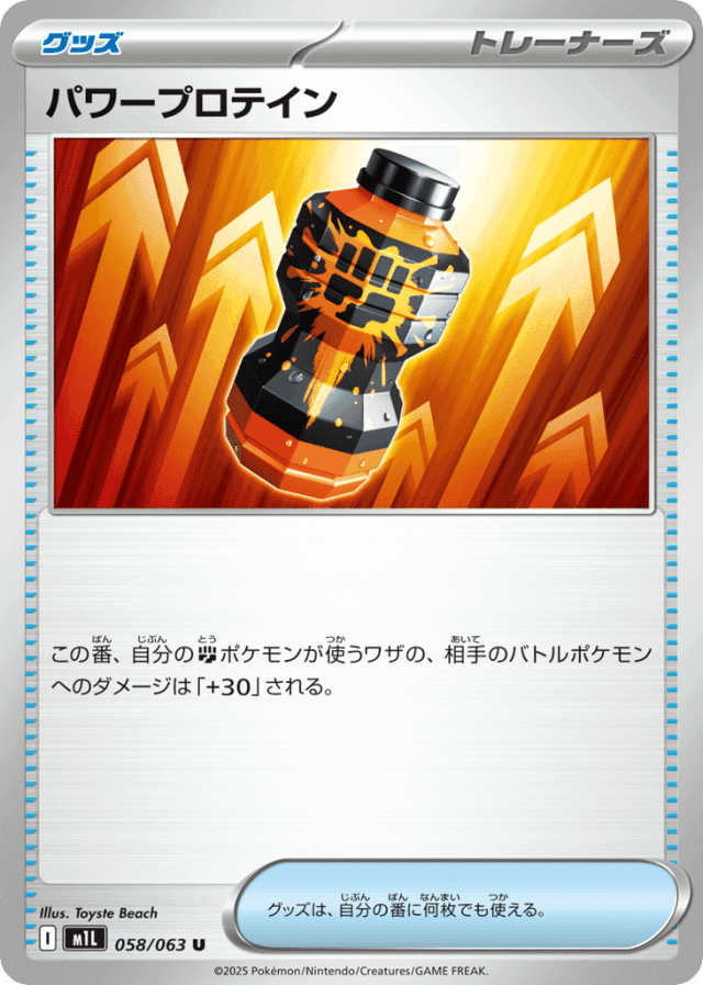 この番、自分のFightingポケモンが使うワザの、相手のバトルポケモンへのダメージは「+30」される。 グッズは、自分の番に何枚でも使える。