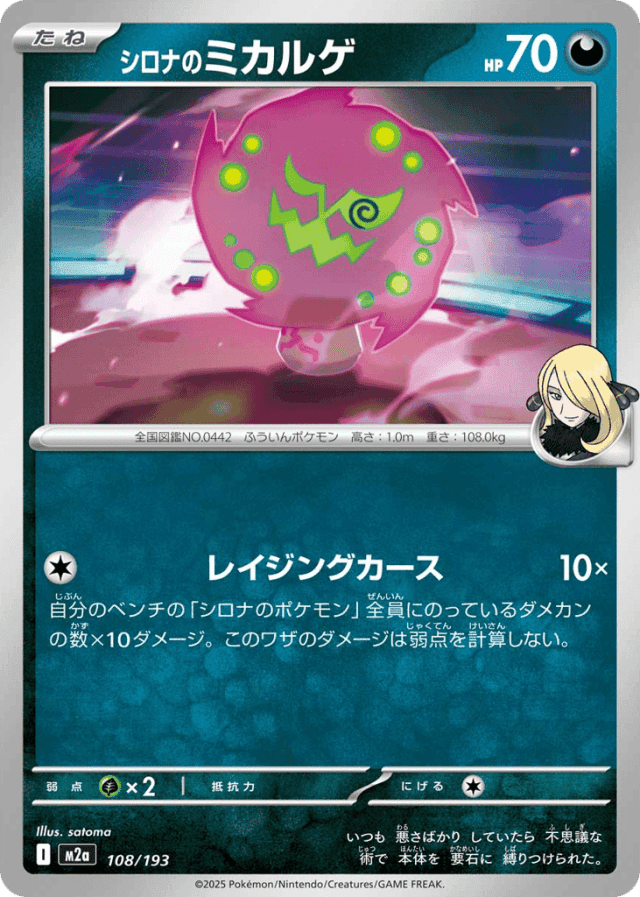 自分のベンチの「シロナのポケモン」全員にのっているダメカンの数×10ダメージ。このワザのダメージは弱点を計算しない。