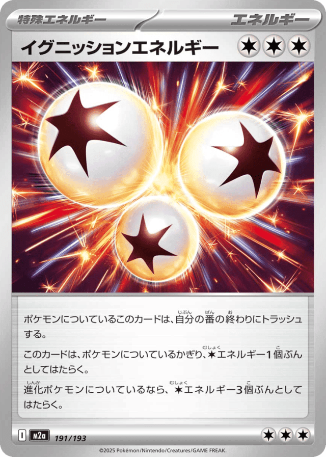 ポケモンについているこのカードは、自分の番の終わりにトラッシュする。 このカードは、ポケモンについているかぎり、Colorlessエネルギー1個ぶんとしてはたらく。 進化ポケモンについているなら、Colorlessエネルギー3個ぶんとしてはたらく。