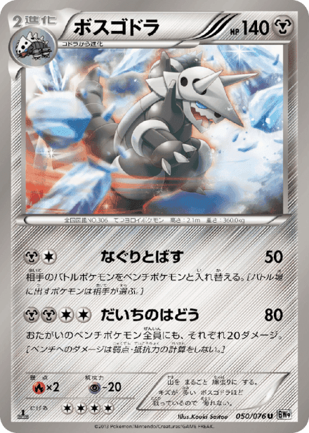 メガロキャノン (Megalo Cannon) is the Japanese Black & White expansion BW9, released on 2013-03-15 and catalogued under setId bw9_ja with a listed total of 86 cards and a printed total of 76. It is part of the Black & White series of Pokémon Japan releases and follows the design, art direction, and numbering conventions used in that era. Collectors can expect Japanese-language Pokémon, Trainer, and Energy cards in this set, along with the range of rarities and print variants typical of Black & White–era Japanese expansions.