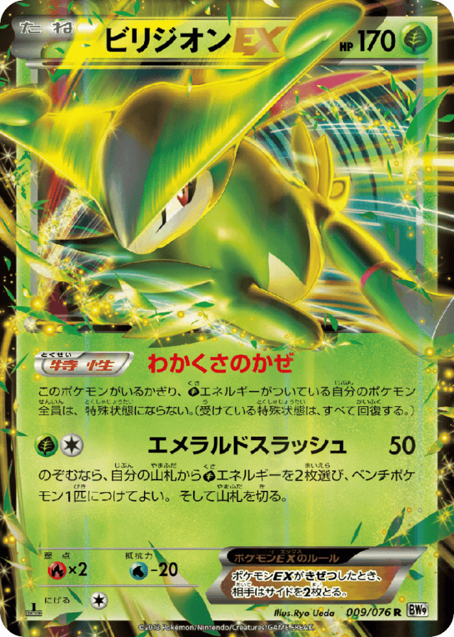 このポケモンがいるかぎり、Grassエネルギーがついている自分のポケモン全員は、特殊状態にならない。(受けている特殊状態は、すべて回復する。)