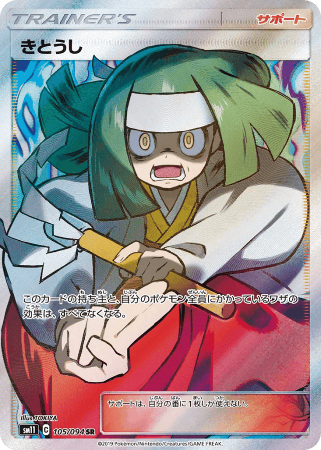 このカードの持ち主と、自分のポケモン全員にかかっているワザの効果は、すべてなくなる。 サポートは、自分の番に1枚しか使えない。