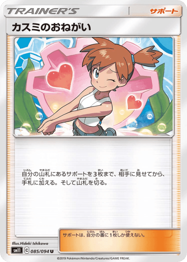 自分の山札にあるサポートを3枚まで、相手に見せてから、手札に加える。そして山札を切る。 サポートは、自分の番に1枚しか使えない。