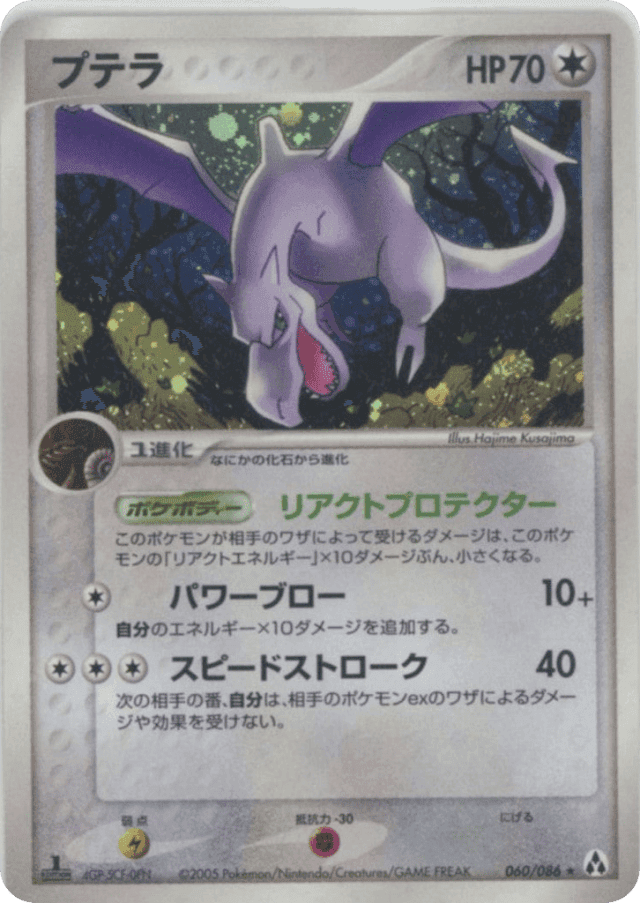Any damage done to Aerodactyl by attacks from your opponent's Pokémon is reduced by 10 for each React Energy card attached to Aerodactyl (after applying Weakness and Resistance).