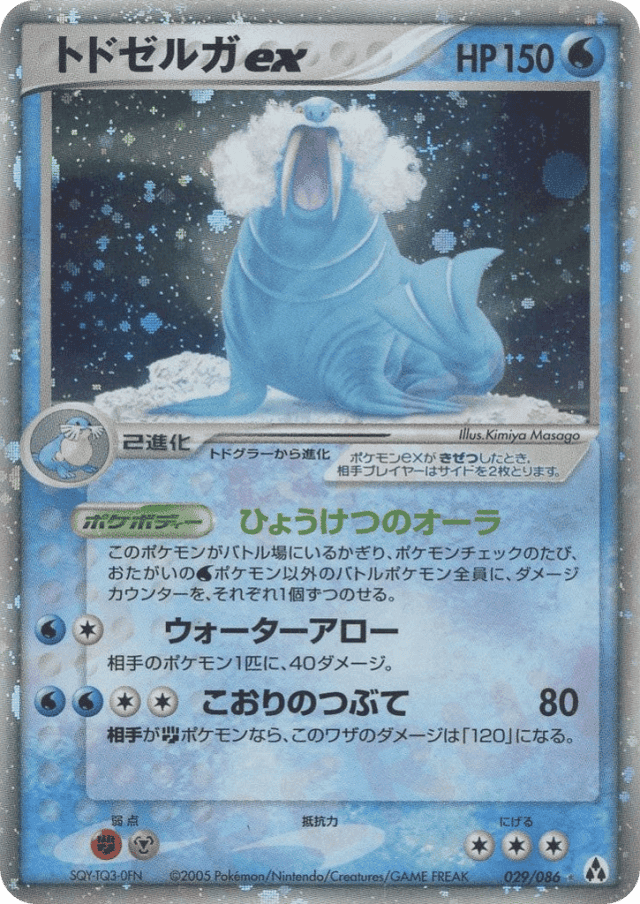 As long as Walrein ex is your Active Pokémon, put 1 damage counter on each Active Pokémon (both yours and your opponent's) between turns, excluding Water Pokémon.