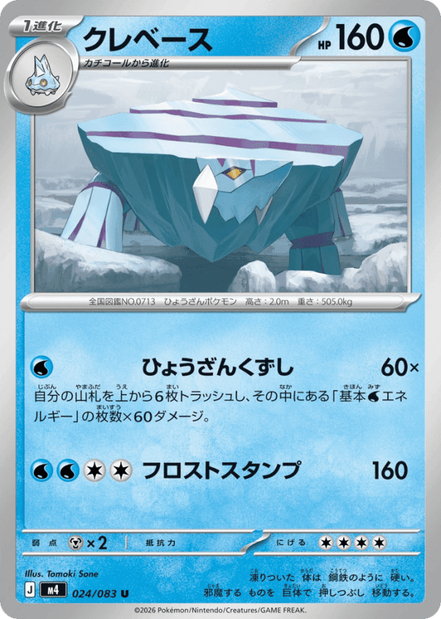 Iceberg Breaker60×Cost: 1自分の山札を上から6枚トラッシュし、その中にある「基本Waterエネルギー」の枚数×60ダメージ。