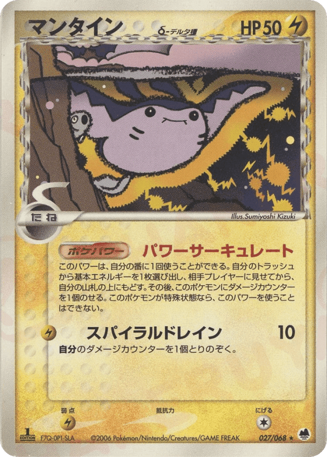 Once during your turn (before your attack), you may search your discard pile for a basic Energy card, show it to your opponent, and put it on top of your deck. If you do, put 1 damage counter on Mantine. This power can't be used if Mantine is affected by a Special Condition.