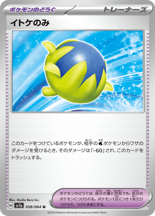 このカードをつけているポケモンが、相手のWaterポケモンからワザのダメージを受けるとき、そのダメージは「-60」され、このカードをトラッシュする。