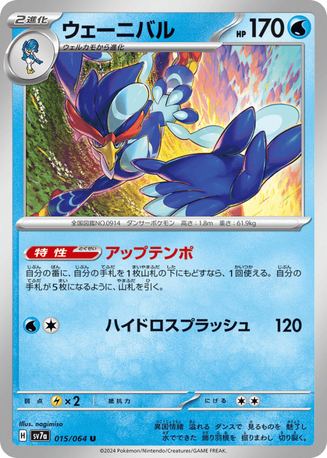 Uptempo自分の番に、自分の手札を1枚山札の下にもどすなら、1回使える。自分の手札が5枚になるように、山札を引く。