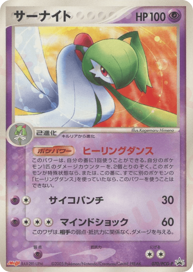 Once during your turn (before your attack), you may remove 2 damage counters from 1 of your Pokémon. You can't use more than 1 Heal Dance Poké-Power each turn. This power can't be used if Gardevoir is affected by a Special Condition.