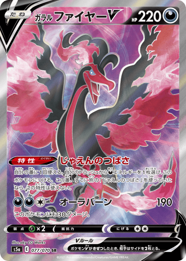 Wicked Flame Wings自分の番に1回使える。自分のトラッシュからDarknessエネルギーを1枚選び、このポケモンにつける。この番、すでに別の「じゃえんのつばさ」を使っていたなら、この特性は使えない。