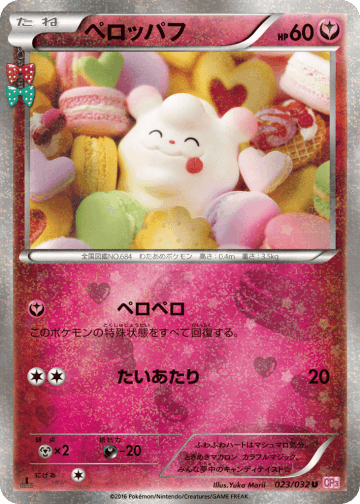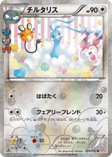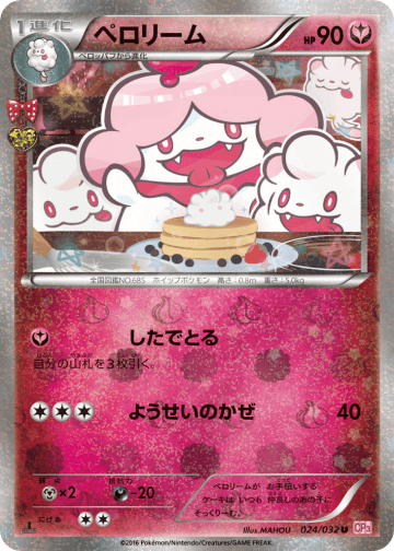 自分の山札から「ヤヤコマ」を2枚まで選び、相手に見せてから、手札に加える。そして山札を切る。