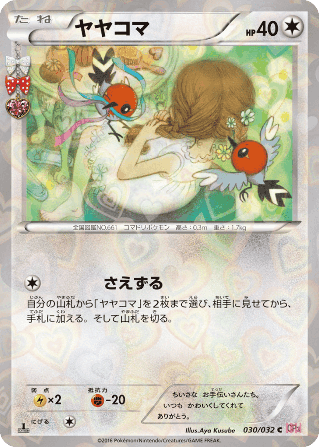 自分の山札から「ヤヤコマ」を2枚まで選び、相手に見せてから、手札に加える。そして山札を切る。
