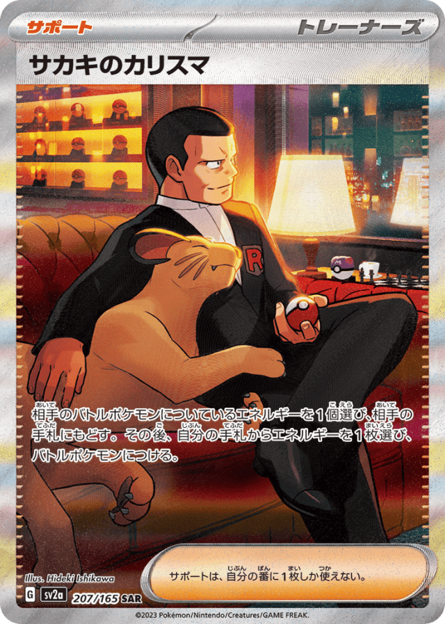 相手のバトルポケモンについているエネルギーを1個選び、相手の手札にもどす。その後、自分の手札からエネルギーを1枚選び、バトルポケモンにつける。 サポートは、自分の番に1枚しか使えない。