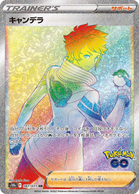 自分の山札を2枚引く。その後、コインを1回投げオモテなら、自分のトラッシュからFireエネルギーを1枚選び、ベンチポケモンにつける。 サポートは、自分の番に1枚しか使えない。