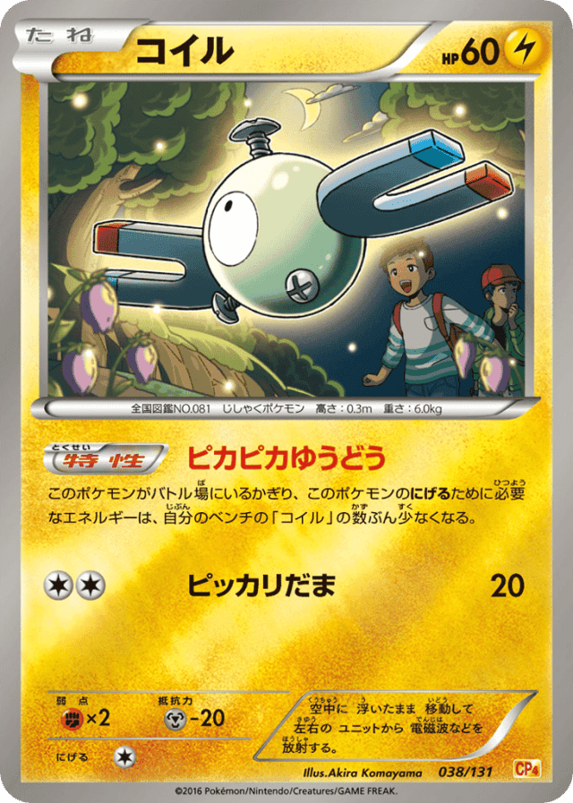 Sparkling Inductionこのポケモンがバトル場にいるかぎり、このポケモンのにげるために必要なエネルギーは、自分のベンチの「コイル」の数ぶん少なくなる。