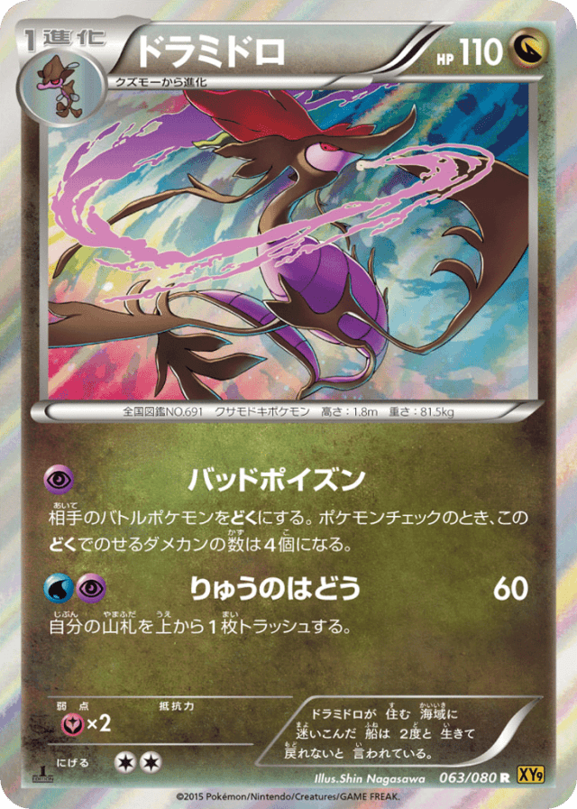Severe PoisonCost: 1相手のバトルポケモンをどくにする。ポケモンチェックのとき、このどくでのせるダメカンの数は4個になる。