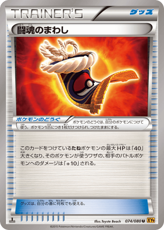 ポケモンのどうぐは、自分のポケモンにつけて使う。ポケモン1匹につき1枚だけつけられ、つけたままにする。