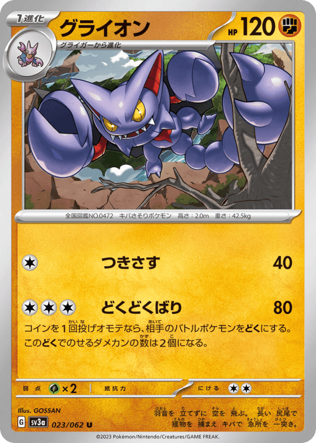 コインを1回投げオモテなら、相手のバトルポケモンをどくにする。このどくでのせるダメカンの数は2個になる。