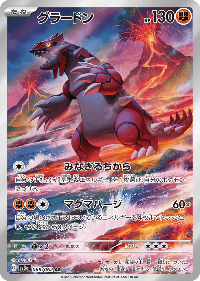 カイオーガと 死闘の末 長い 眠りに ついた。大地の 化身と 言われる 伝説の ポケモン。
