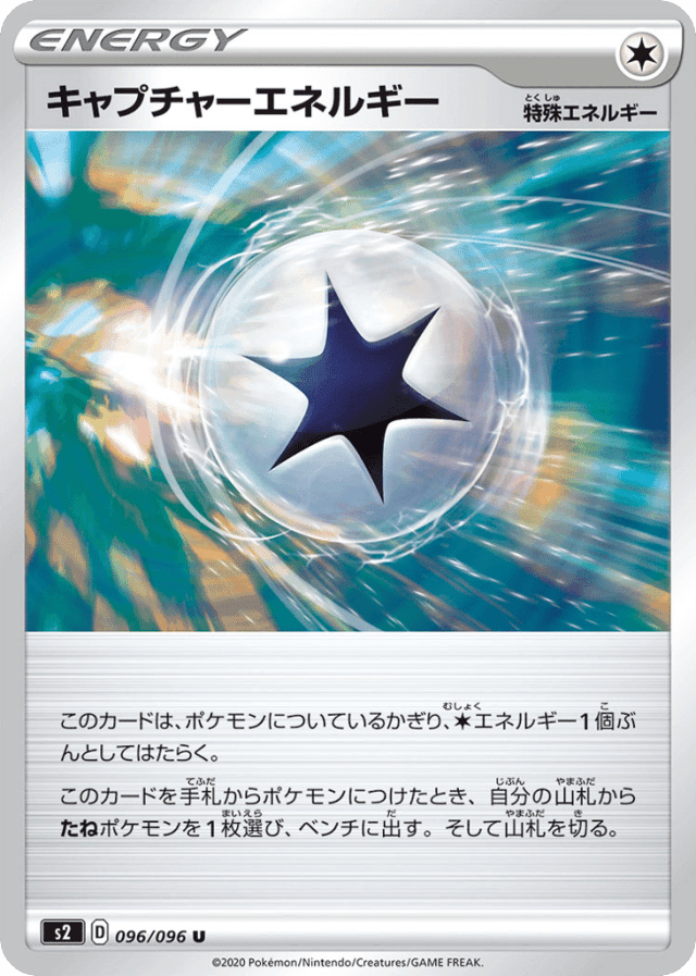 - このカードは、ポケモンについているかぎり、Colorlessエネルギー1個ぶんとしてはたらく。 — このカードを手札からポケモンにつけたとき、自分の山札からたねポケモンを1枚選び、ベンチに出す。そして山札を切る。