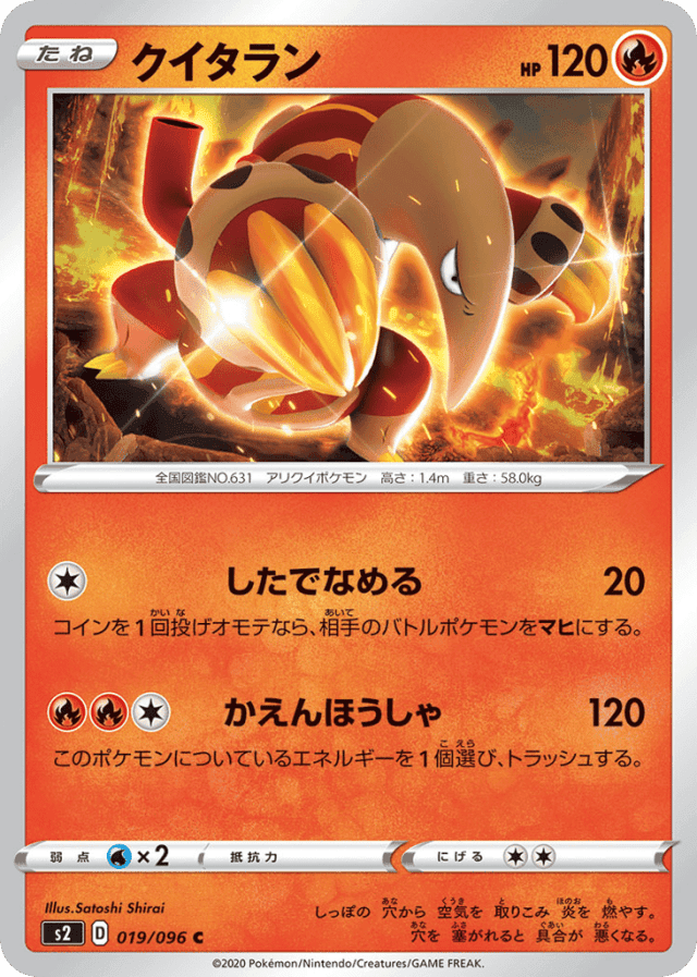 Flamethrower120Cost: 3このポケモンについているエネルギーを1個選び、トラッシュする。