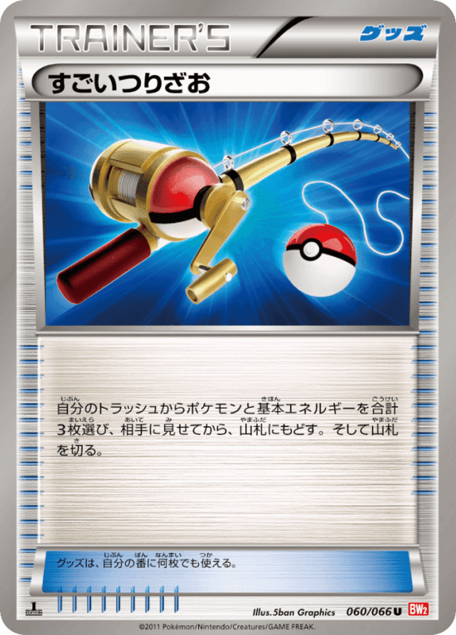 自分のトラッシュからポケモンと基本エネルギーを合計3枚選び、相手に見せてから、山札にもどす。そして山札を切る。 グッズは、自分の番に何枚でも使える。