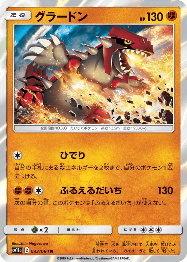 高熱で 水を 蒸発させて 大地を 広げたと 言われている。 カイオーガと 激しく 戦った。