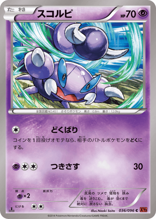 Poison StingCost: 1コインを1回投げオモテなら、相手のバトルポケモンをどくにする。