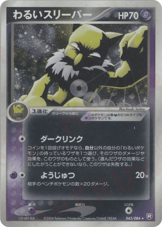 Flip a coin. If heads, choose an attack on 1 of your Pokémon in play that has Dark in its name (excluding this one). Dark Link copies that attack except for its Energy cost. (You must still do anything else required for that attack.) (No matter what type that Pokémon is, Dark Hypno's type is still Psychic Darkness.) Dark Hypno performs that attack.