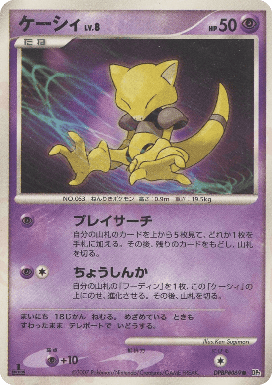 自分の山札の「フーディン」を1枚、この「ケーシィ」の上にのせ、進化させる。その後、山札を切る。