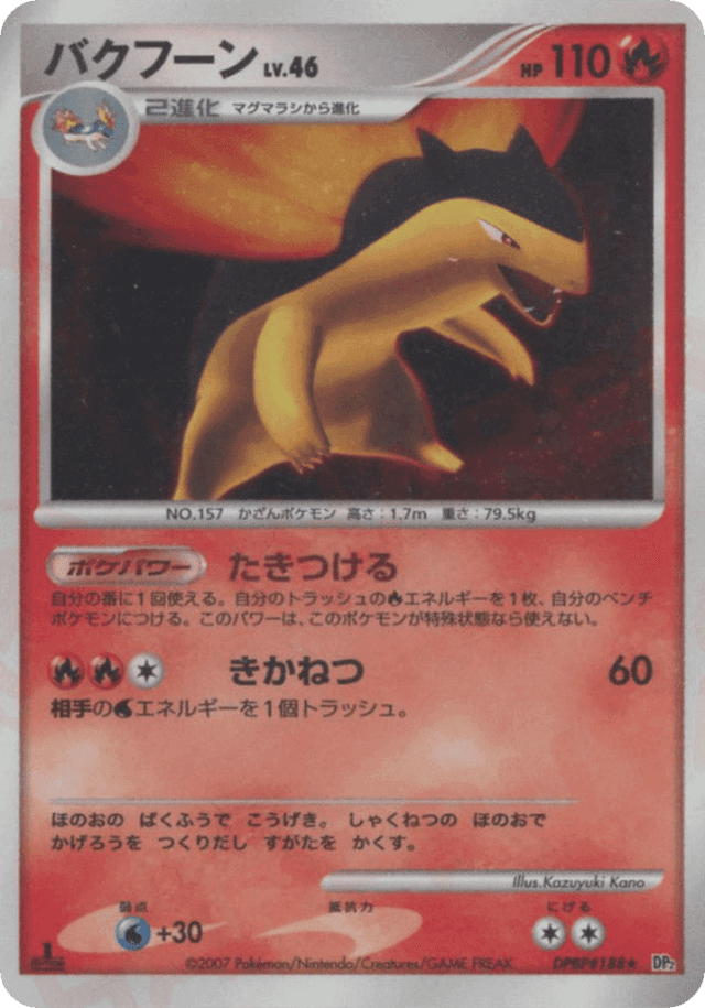 Once during your turn (before your attack), you may attach a Fire Energy card from your discard pile to 1 of your Benched Pokémon. This power can't be used if Typhlosion is affected by a Special Condition.