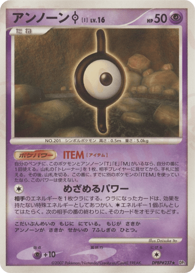 Once during your turn (before your attack), if you have Unown I, Unown T, Unown E, and Unown M on your Bench, you may search your deck for a Trainer card, show it to your opponent, and put it into your hand. Shuffle your deck afterward. You can't use more than 1 ITEM Poké-Power each turn.